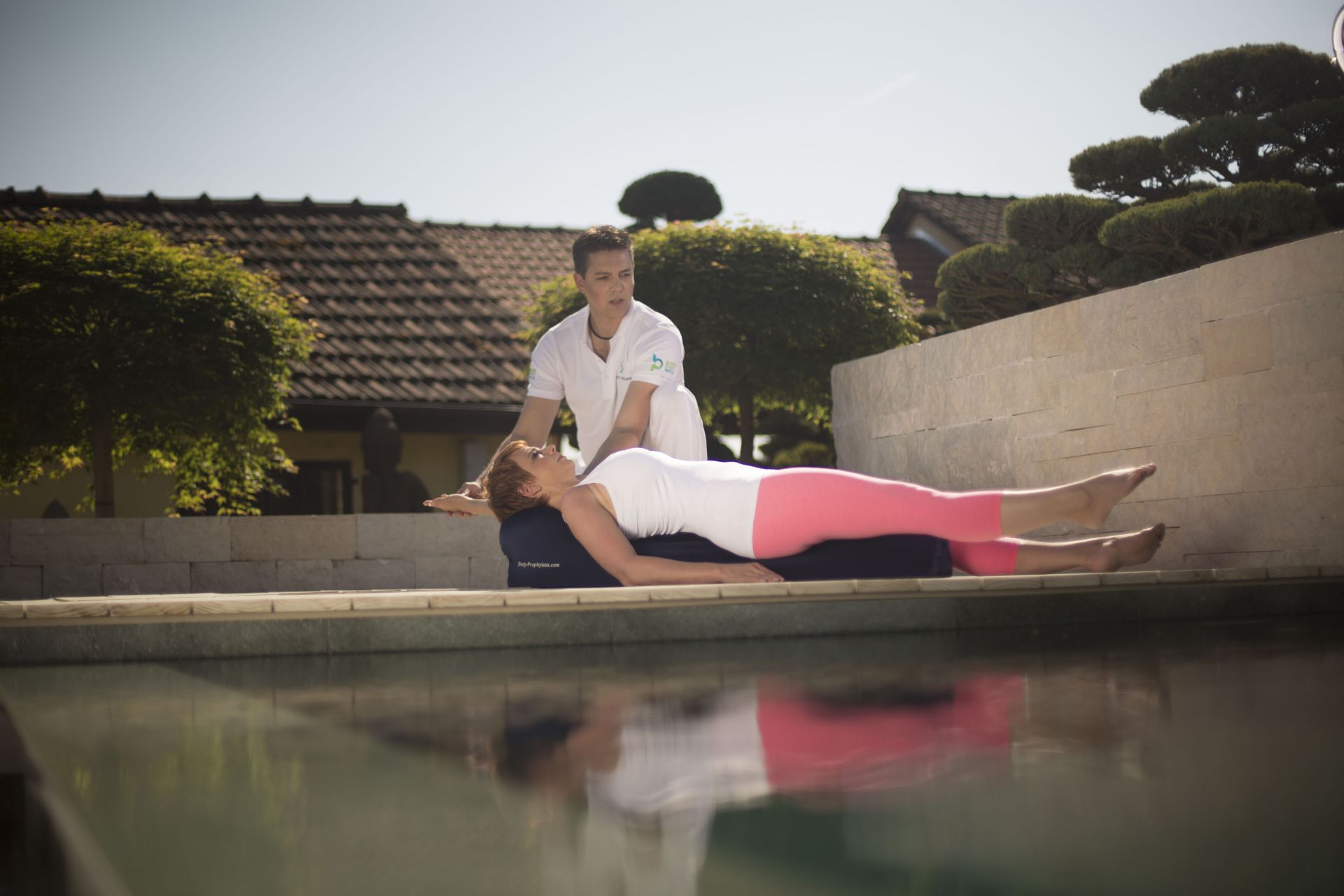 Dank der sanften Auflage der Wirbelsäule auf dem Body-Prophylaxx, werden durch die Schwerkraft des Körpers, die Wirbelsäule, der Rücken und das Beckengelenk ISG mobilisiert und entlastet.